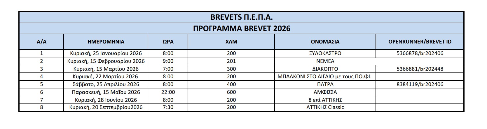 ΠΡΟΓΡΑΜΜΑ BREVETS 2026