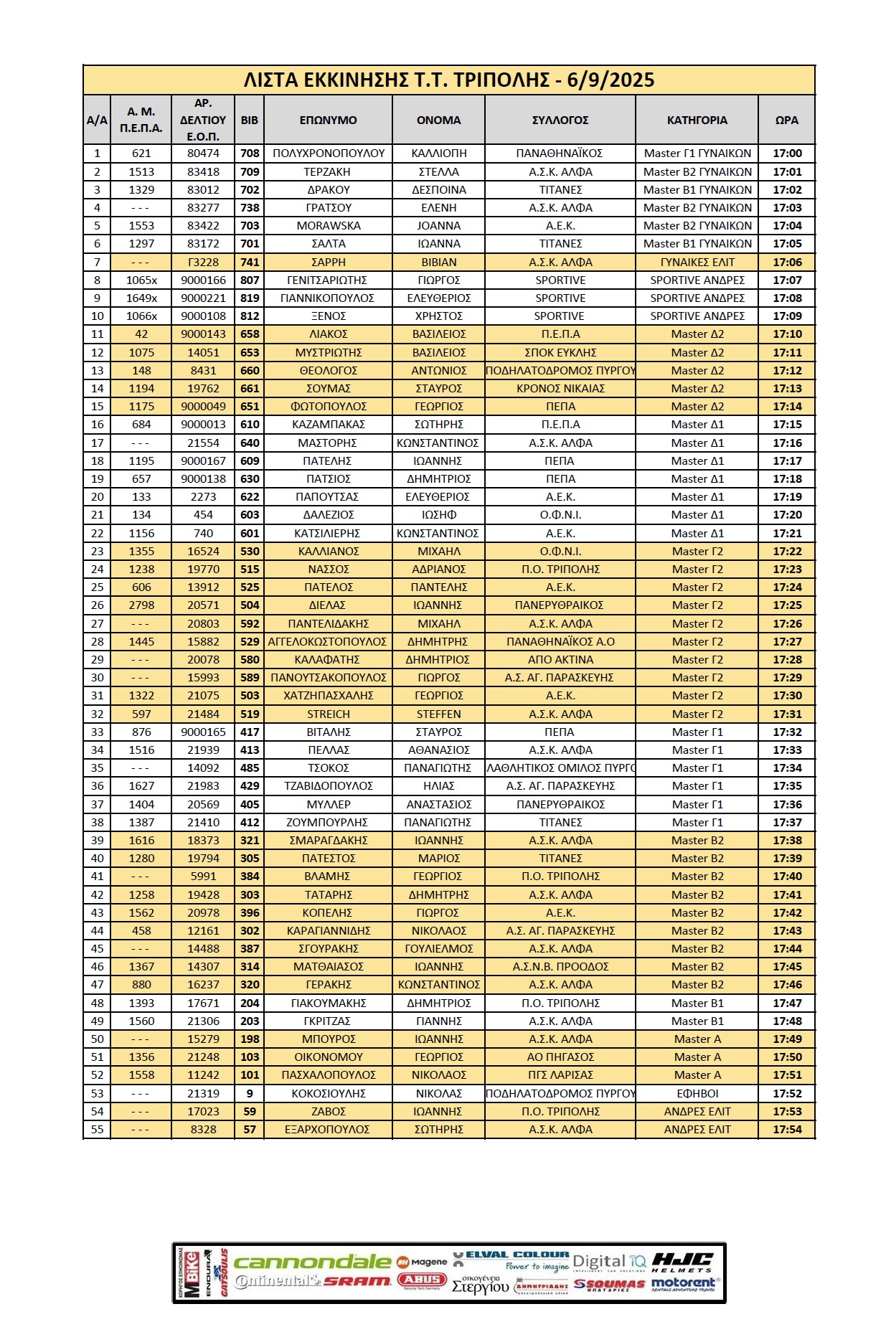 ΛΙΣΤΑ ΕΚΚΙΝΗΣΗΣ ΤΤ ΤΡΙΠΟΛΗΣ 6/9/2025